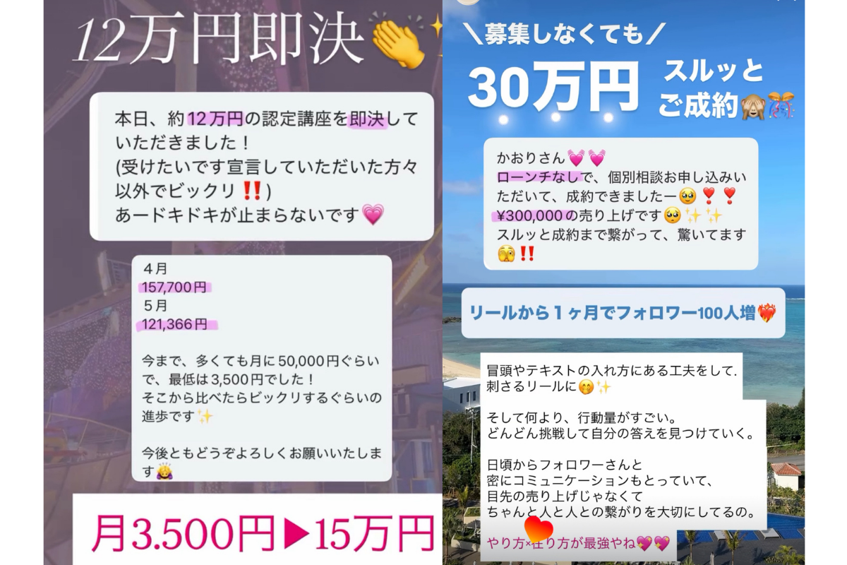 でも、インスタ発信に挑戦して、月商20万円→7桁へと売り上げを伸ばし、