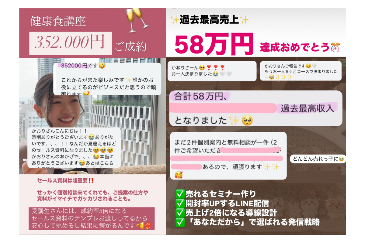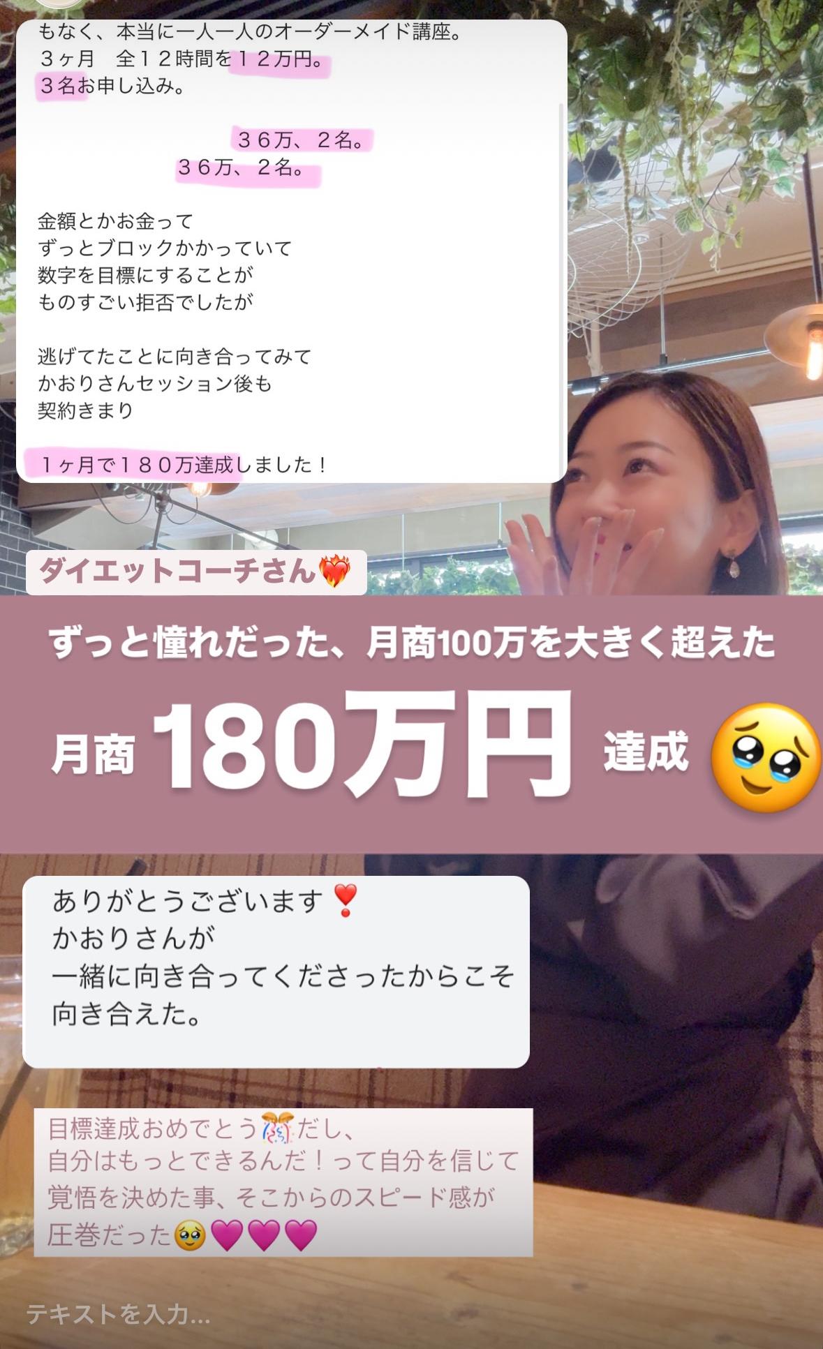 でも、少しずつできることが増えて、ダイエット講座を作り、月商20万円、100万円と売上が伸びていきました。
